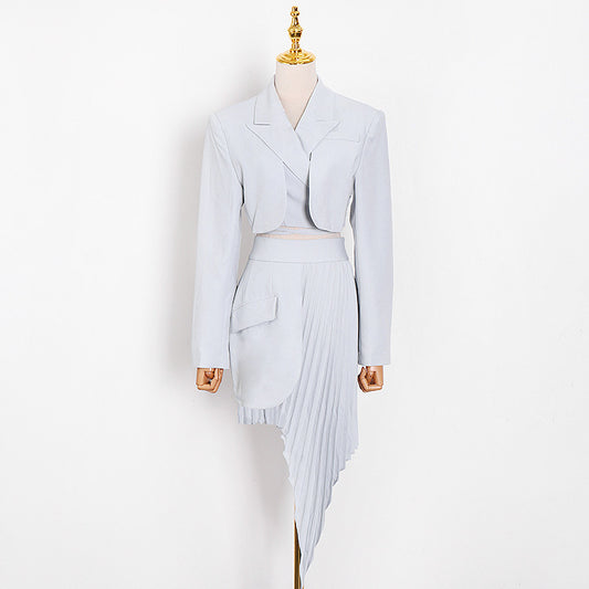 Casual White Two Piece Set For Women Notched Long Sleeve