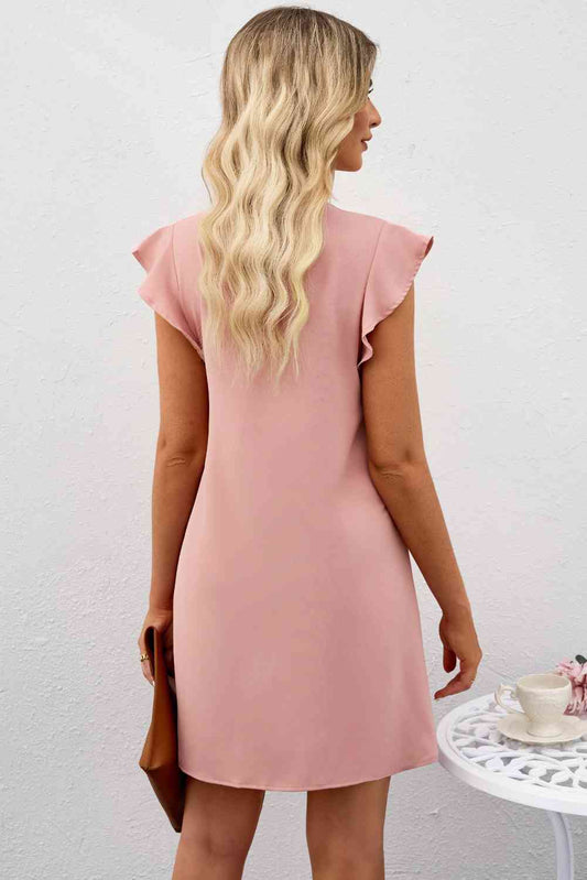 Sold outTie Neck Flutter Sleeve Shift Dress