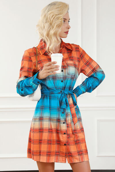 Sold outPlaid Button Up Tie-Waist Dress