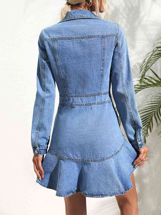 Buttoned Round Neck Long Sleeve Sweater Dress