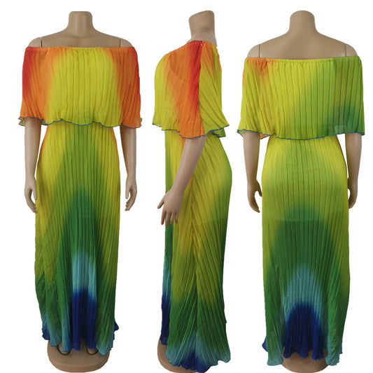 Summer New Product Gradient Pleated European And American Sexy Dress