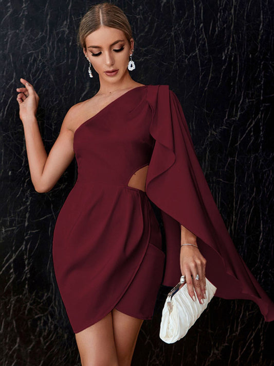 One-Shoulder Cloak Sleeve Cutout Dress