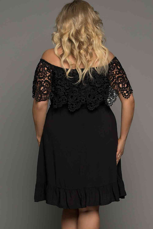 Plus Size Tassel Tie Spliced Lace Off-Shoulder Dress