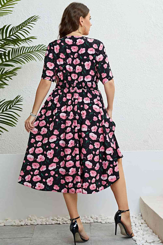 Plus Size Printed Surplice Neck Knee-Length Dress