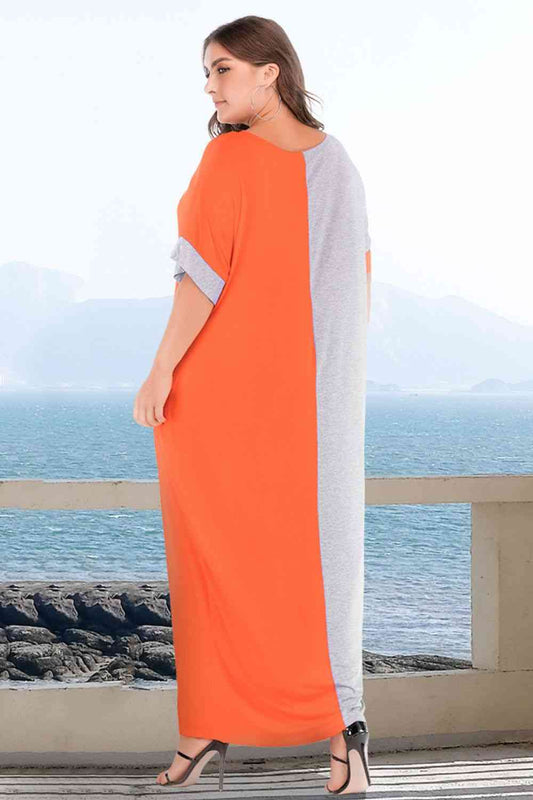 Plus Size Color Block Tee Dress with Pockets