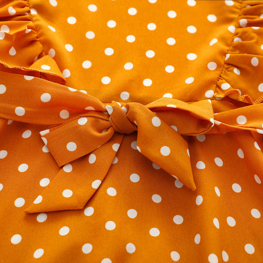 Girls' Polka Dot Lace Long Sleeve One Piece Dress