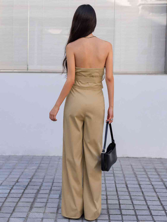 Double Take Full Size Tie Back Cutout Sleeveless Jumpsuit