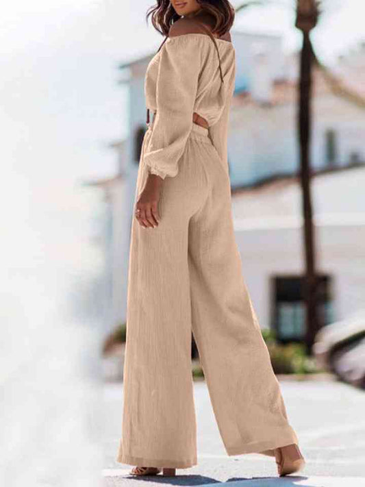 Leg-Of-Mutton Sleeve Top and Flare Pants Set