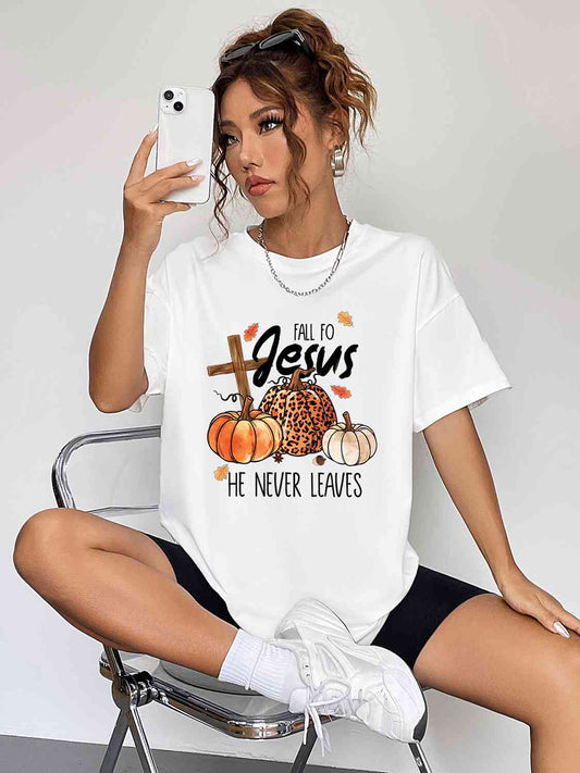 Round Neck Short Sleeve Fall Season Graphic T-Shirt