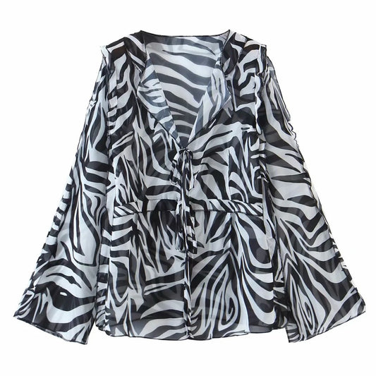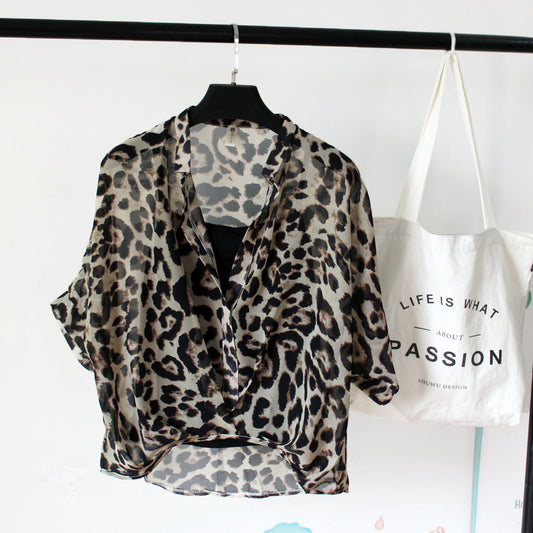 Seven-point Bat-sleeve Leopard-print Chiffon Shirt Summer Blouse Women