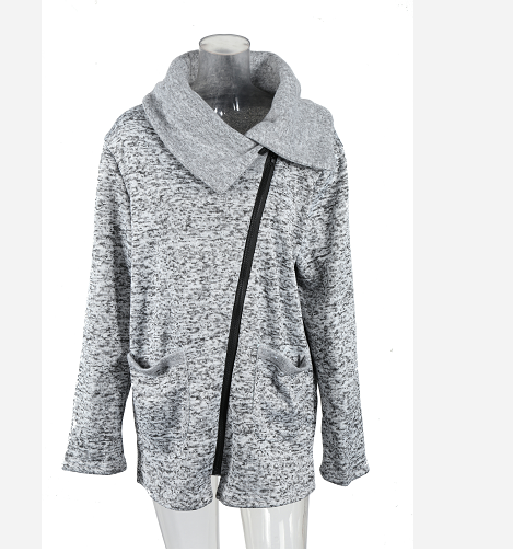 Europe And America Autumn And Winter Side Zipper Plus Velvet Sweater Female Wool Sweater Coat Female