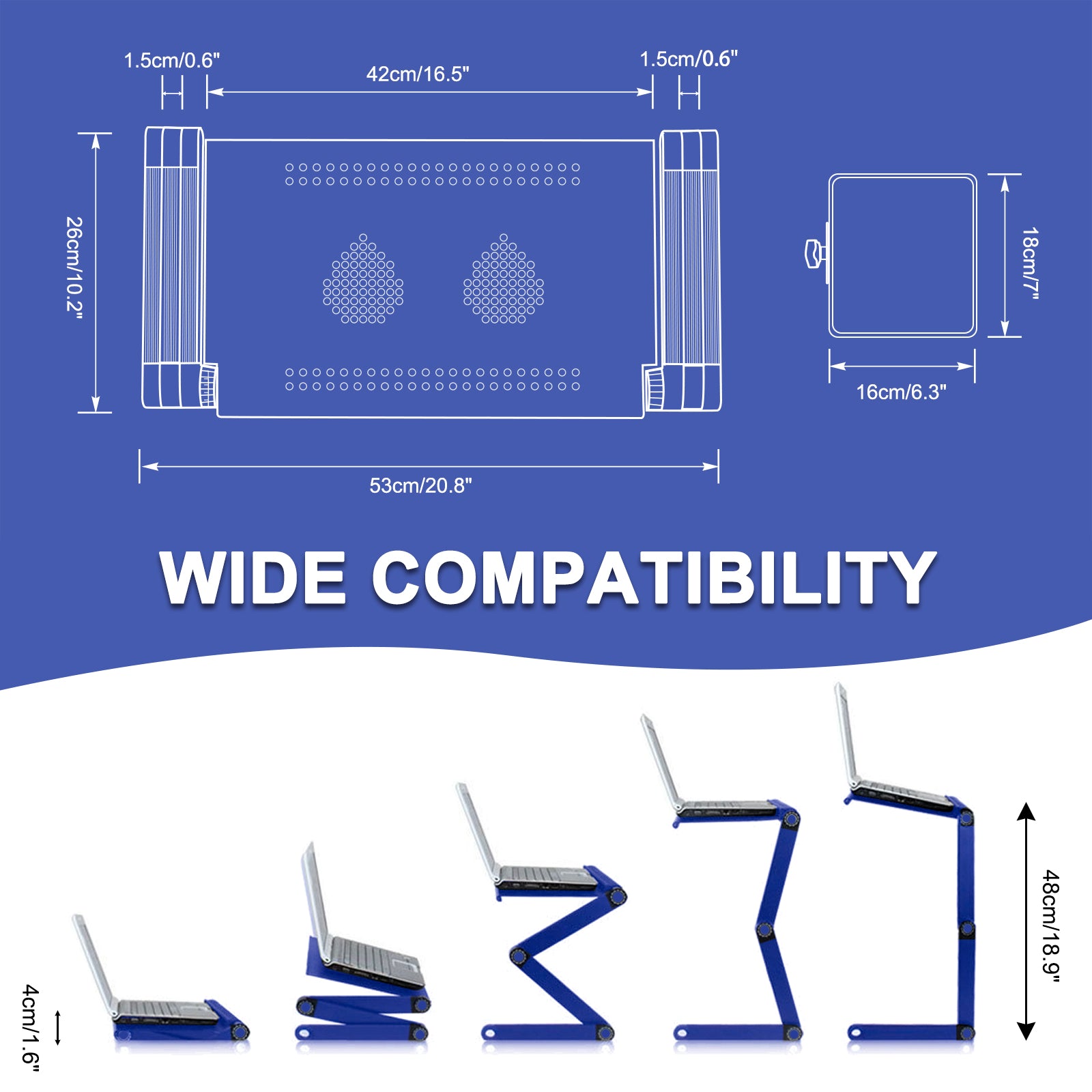 Adjustable Laptop Stand, RAINBEAN Laptop Desk with 2 CPU Cooling USB Fans for Bed Aluminum Lap Workstation Desk with Mouse Pad, Foldable Cook Book Stand Notebook Holder Sofa,Amazon Banned