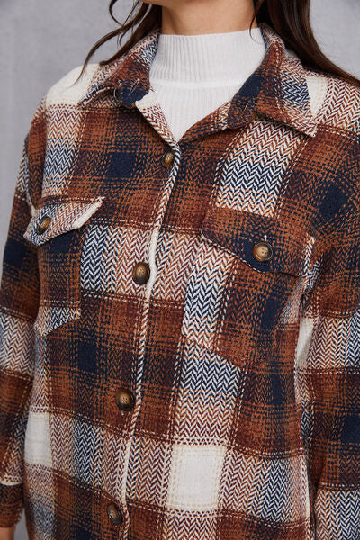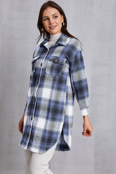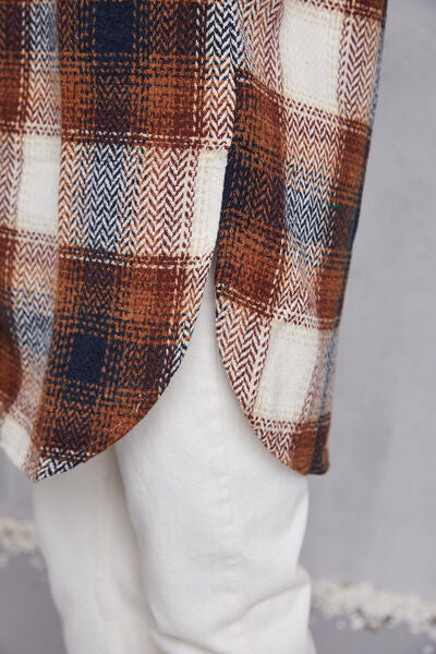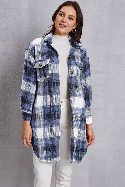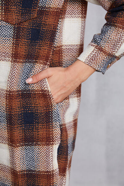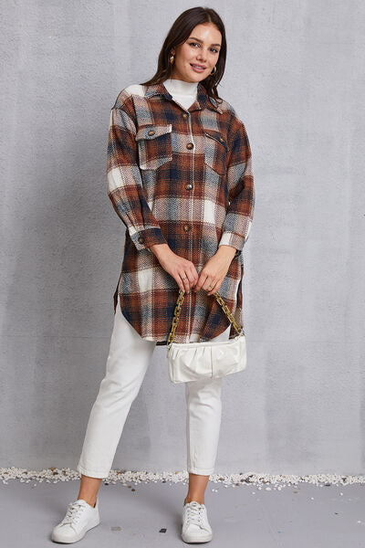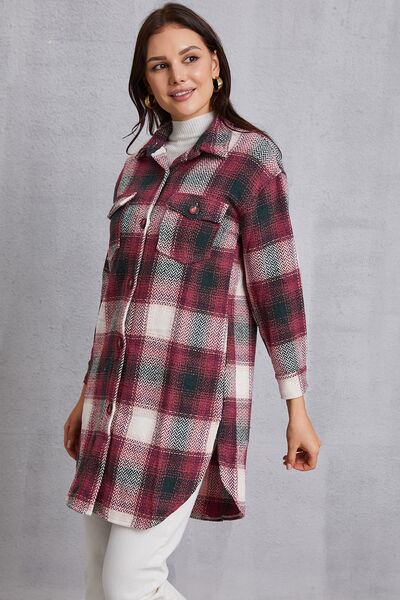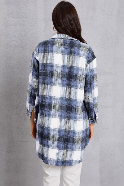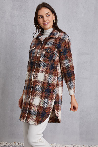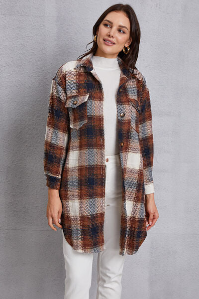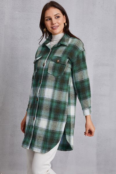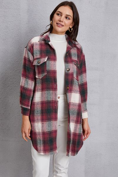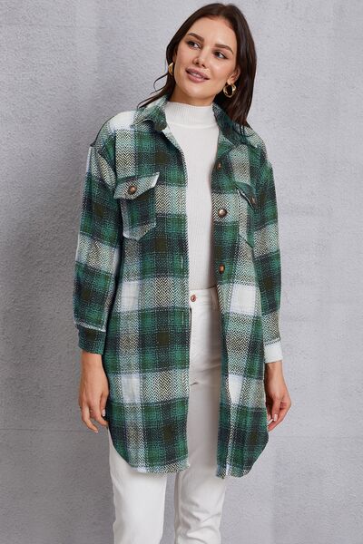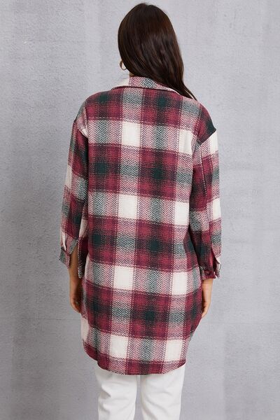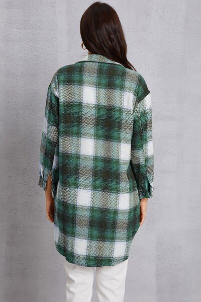 Plaid Button Up Dropped Shoulder Coat with Pockets